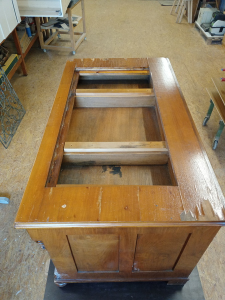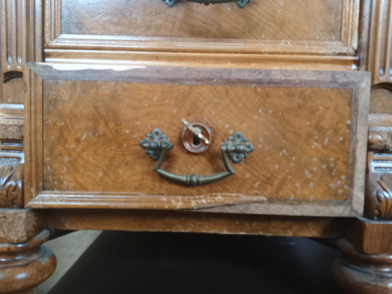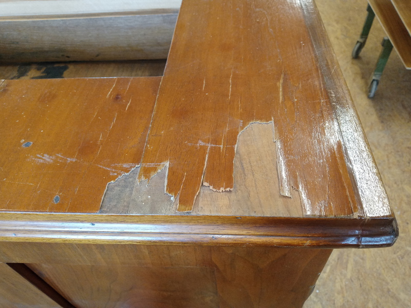 Ich arbeite ausschließlich mit Materialien die auch bei der Entstehung des Möbelstückes verwendet wurden, beispielsweise mit Knochenleimen, Fischblasenleimen, Pigmenten, Leinöl und Schellack.